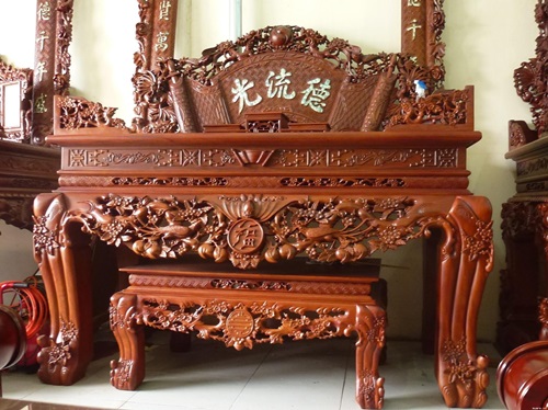 Những nghệ nhân đã thổi hồn mình vào những mẫu tủ thờ vẻ ấy, khiến nó trở nên cuốn hút, vì thế mà không gian thờ cúng cũng trở nên trang nghiêm, thành kính hơn. Có khá nhiều mẫu tủ thờ điêu khắc đẹp như: một số mẫu tủ thờ điêu khắc long – ly – quy – phượng tượng trưng cho tấn tài tấn lộc, vạn sự như ý, hay mẫu tủ thờ gỗ căm xe chạm khắc Phúc – Lộc – Thọ mong muốn một cuộc sống hạnh phúc, tài lộc, vạn thọ cho cả gia đình.