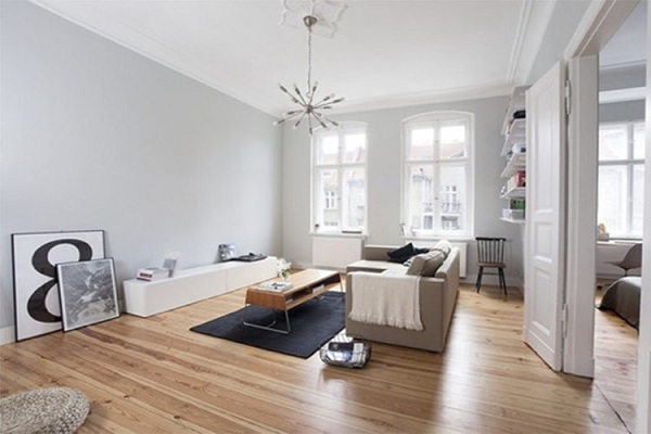 Màu trắng sắc xám giúp mang lại nét mềm mại, dịu dàng cho cả căn nhà của bạn. Bên cạnh đó, phòng khách được sơn màu này sẽ trở nên sang trọng, quý phái hơn nhưng vẫn duy trì được sự ấm cúng, dễ chịu. Khi sơn nhà gỗ màu trắng xám, bạn có thể không sơn trần và sàn để mang lại sự cân bằng về thị giác đồng thời tiết kiệm được một phần chi phí sơn nhà. Màu sơn này hợp với các gia chủ mệnh thủy hoặc mệnh kim.