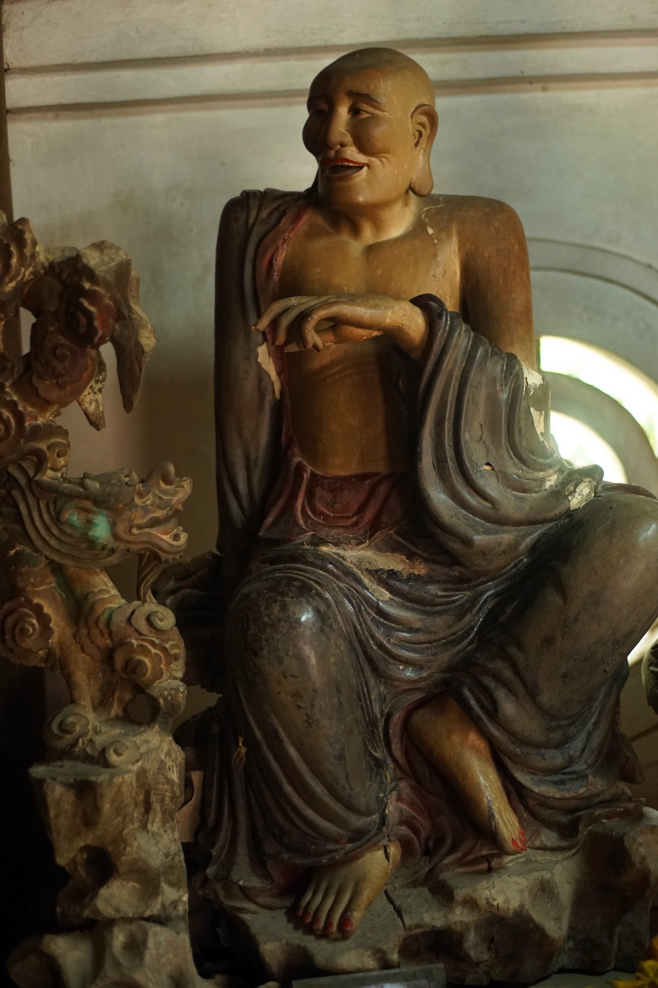 4. Ưu Bà Cúc Đa (Upagupta). Ưu Bà Cúc Đa là đệ tử của Thương Na Hòa Tu. Tương truyền mỗi khi cứu độ được một người thì ông bỏ một thẻ tre vào trong hang. Về sau hang đá đầy đến tận nóc. Tượng ông tay trái cầm một cuộn sách, tay phải cầm một thẻ tre (đã bị mất), được tạo dáng ngồi nhấp nhổm rất sinh động.