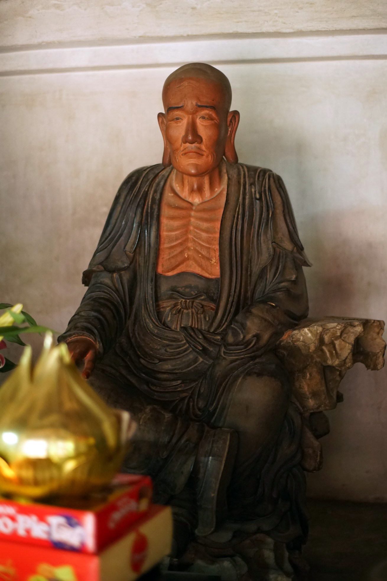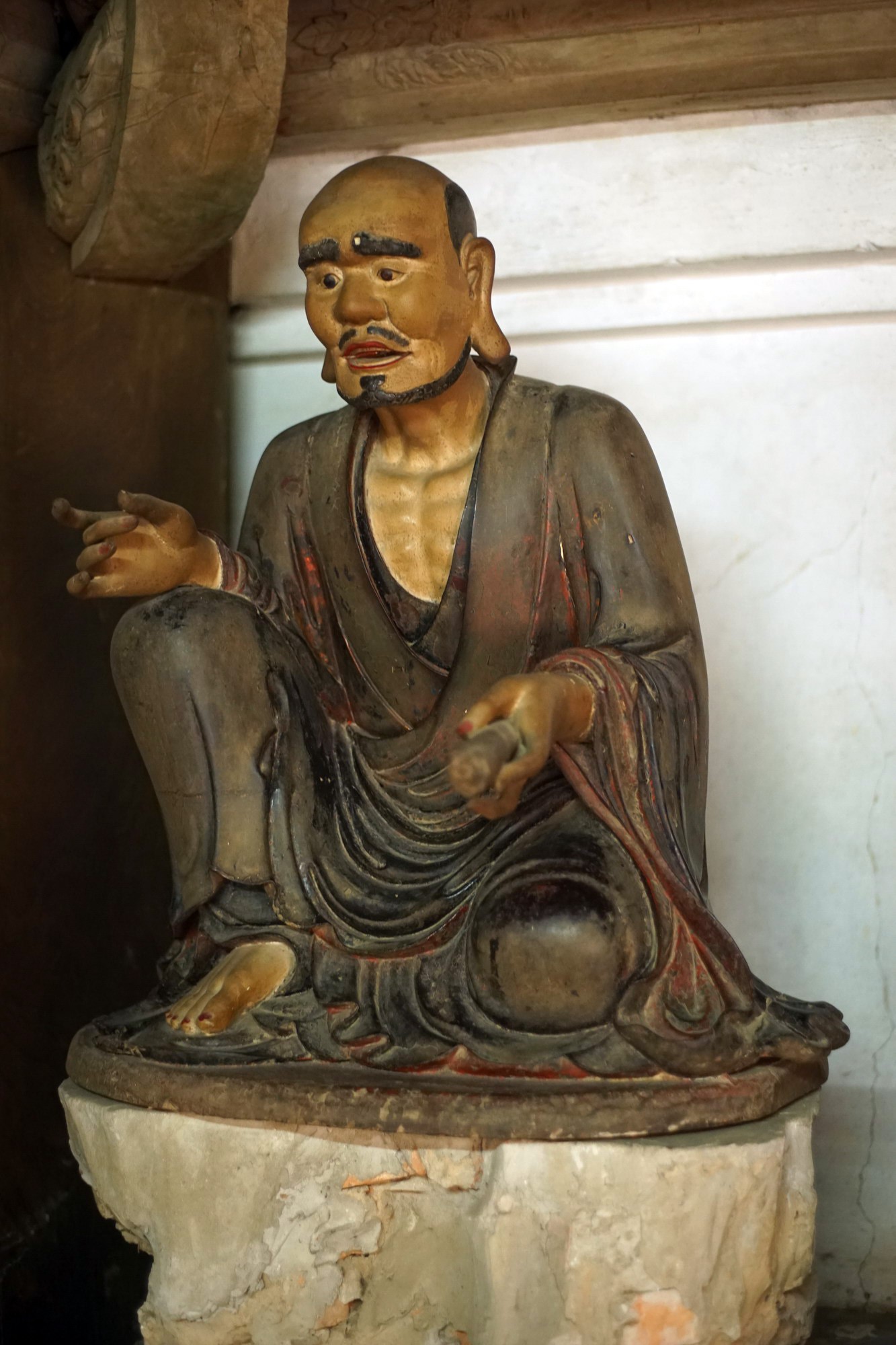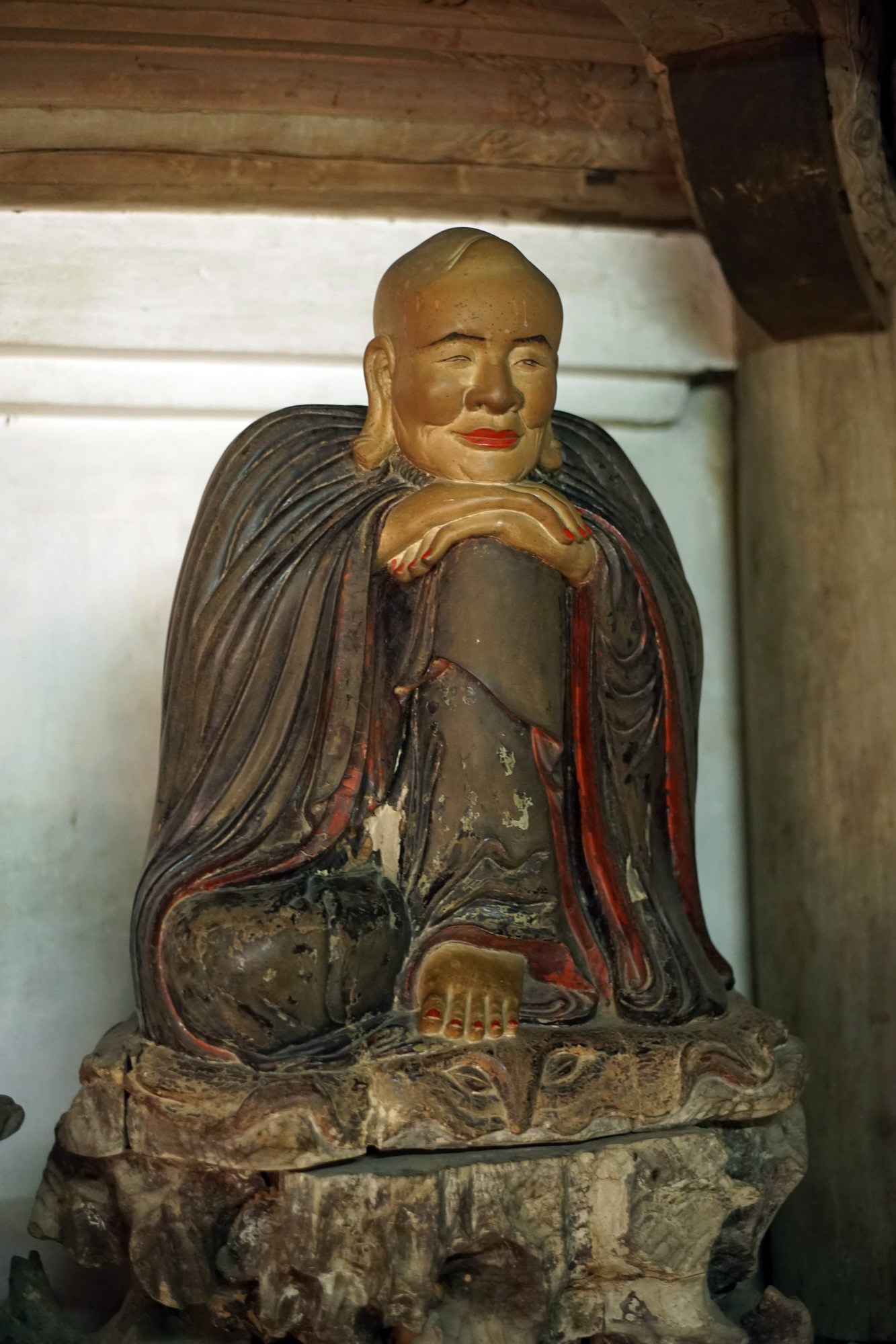 6. Di Giá Ca (Michakha). Sư tổ Di Giá Ca là người đã truyền bá Phật pháp ở rất nhiều vùng đất khác nhau. Tượng ông được tạo hình với thế đứng, khuôn mặt biểu lộ sự ngạc nhiên, như phía trước có cảnh lạ hay đang tranh luận với ai đó. Đây là một trong những bức tượng thể hiện cảm xúc sống động nhất trong các tượng La Hán chùa Tây Phương.