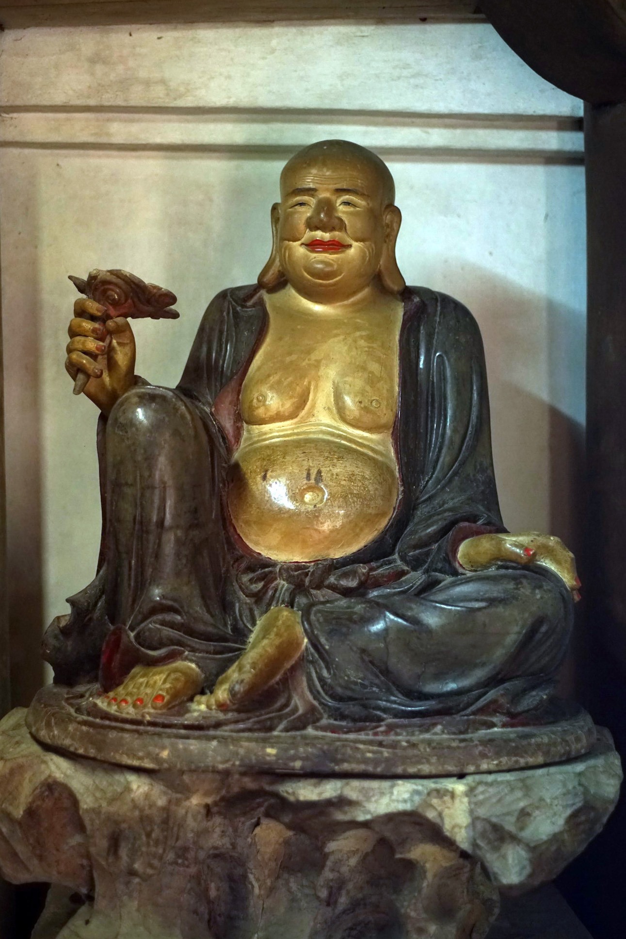 9. Phật Đà Mật Đa (Bouddhamitra).. Tương truyền, Sư tổ Phật Đà Mật Đa đến 50 tuổi vẫn không nói, không đi ra khỏi nhà, vì chưa nghe được điều gì hay cả, cho đến khi Phật Đà Nan Đề đến tận nhà truyền pháp. Vì thế tượng tạc lúc ông đã lớn tuổi, nhưng lần đầu mới được ngộ giáo lý, thể hiện qua việc đọc cuốn sách, mặt mũi hân hoan.