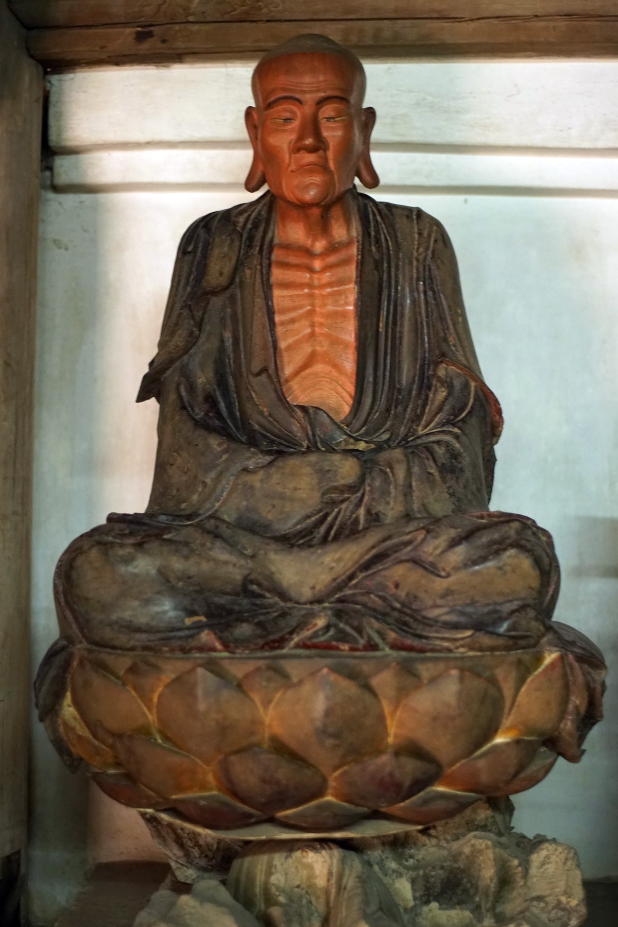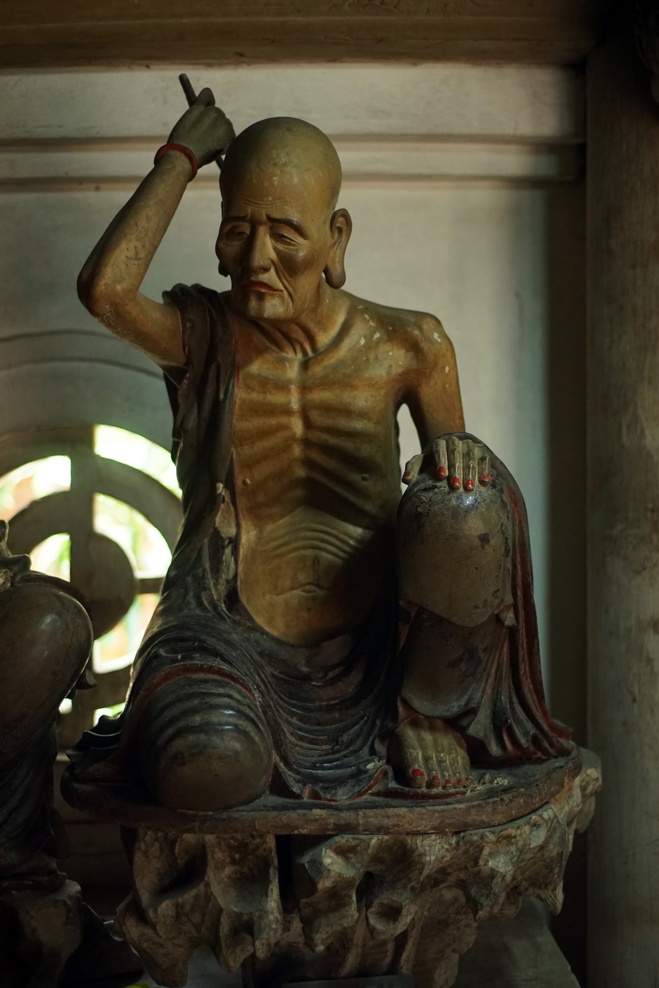 Đây vị xương trần chân với tay Có chi thiêu đốt tấm thân gầy Trầm ngâm đau khổ sâu vòm mắt Tự bấy ngồi y cho đến nay.