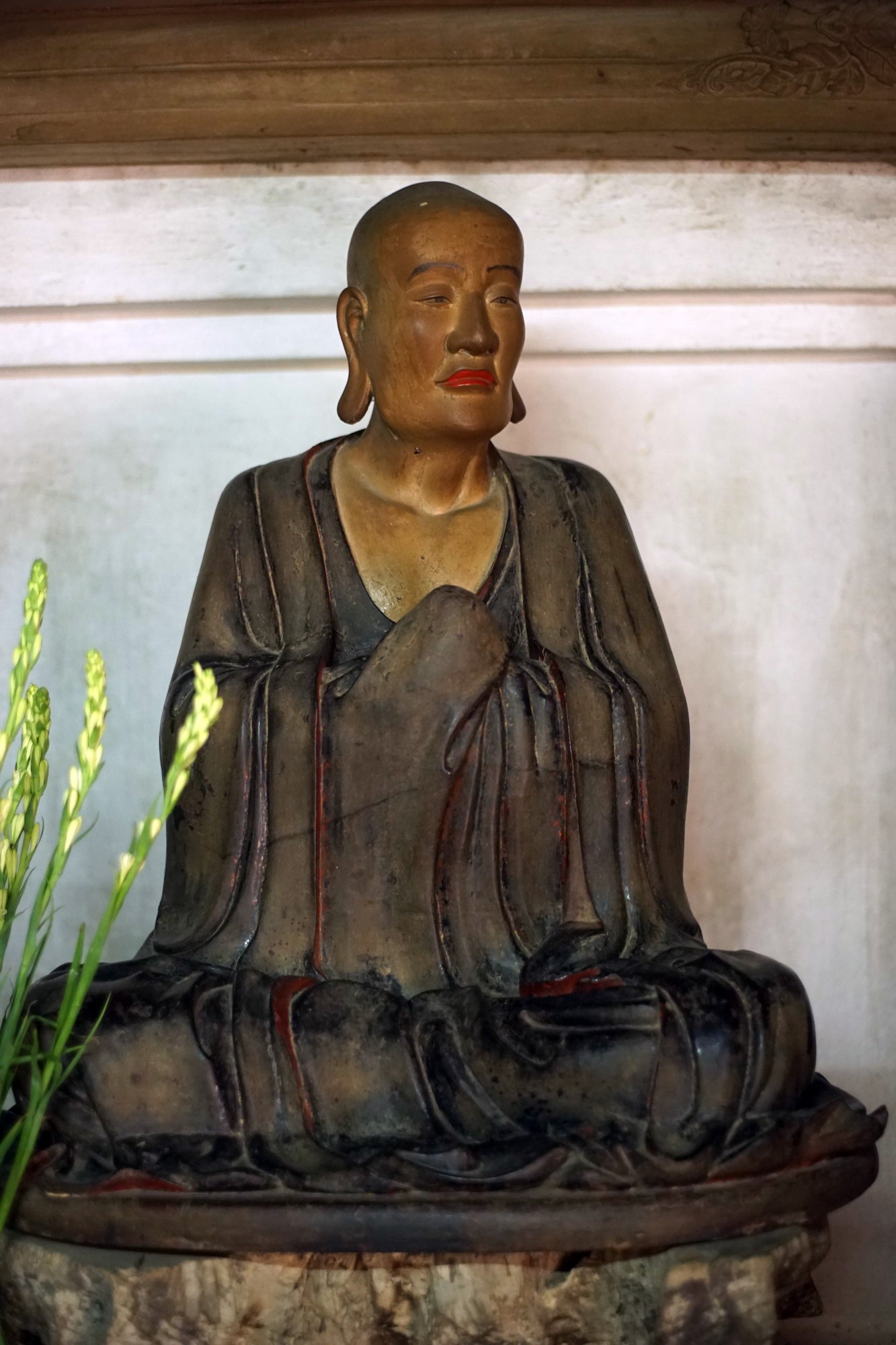 7. Bà Tu Mật (Vasumatra). Sư tổ Bà Tu Mật khi chưa xuất gia nổi tiếng là người thích kết giao bạn bè, thơ ca, uống rượu, ăn mặc lịch sự… ng của ông được tạc trong tư thế cung kính niệm phật, miệng đang chào hỏi, cầu phúc cho người đối diện, quần áo trang phục chỉnh tề đẹp đẽ.